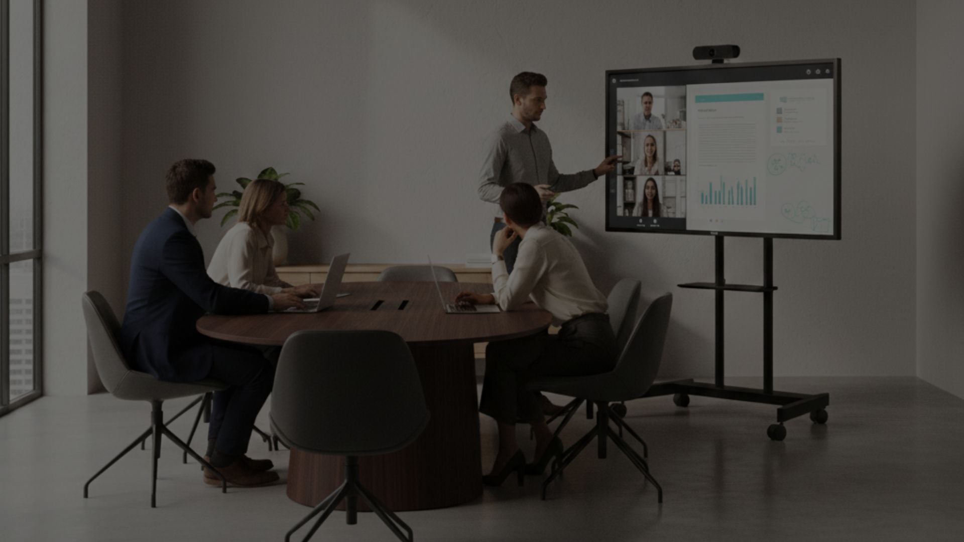 Just roll it into the room, power it on, and start collaborating. Share screens, annotate ideas, and work naturally — without setup stress.